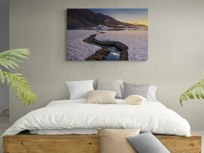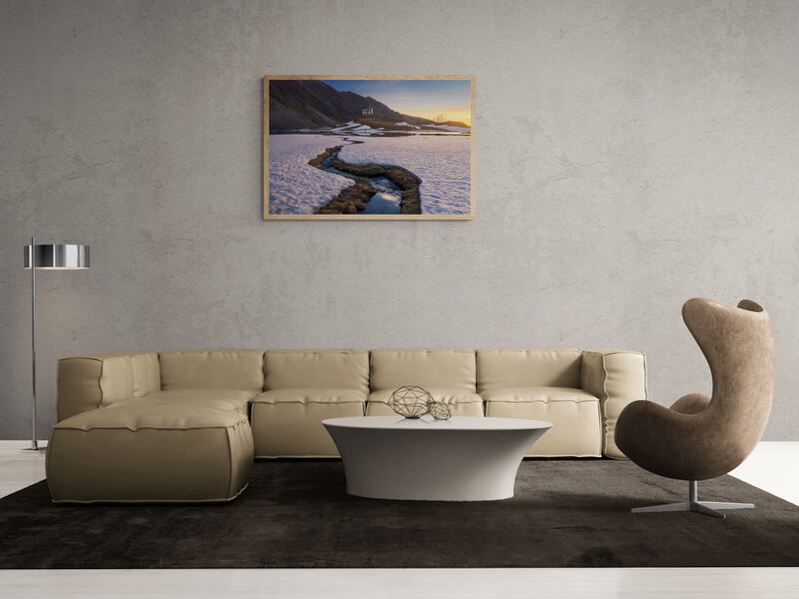 Una volta stampata può essere montata su un telaio in legno con spessore di 17, 30 o 45 mm. e posizionata direttamente a parete senza bisogno di cornice.