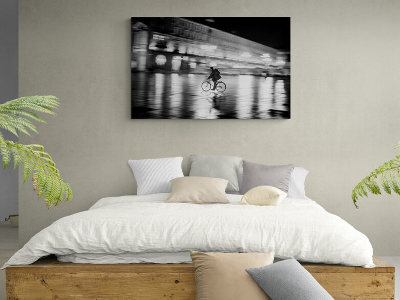 Una volta stampata può essere montata su un telaio in legno con spessore di 17, 30 o 45 mm. e posizionata direttamente a parete senza bisogno di cornice.