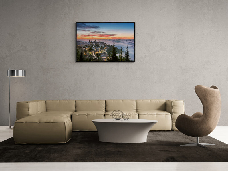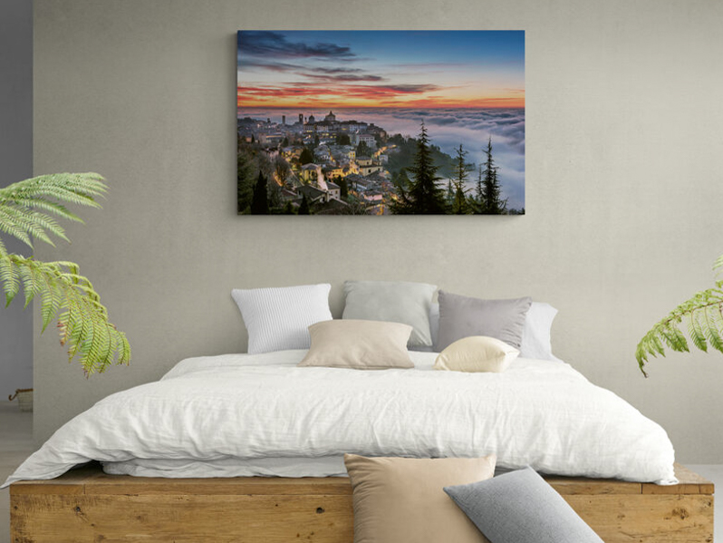 Una volta stampata può essere montata su un telaio in legno con spessore di 17, 30 o 45 mm. e posizionata direttamente a parete senza bisogno di cornice.