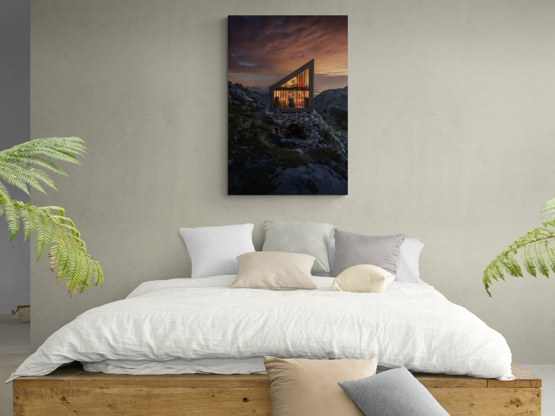 Una volta stampata può essere montata su un telaio in legno con spessore di 17, 30 o 45 mm. e posizionata direttamente a parete senza bisogno di cornice.